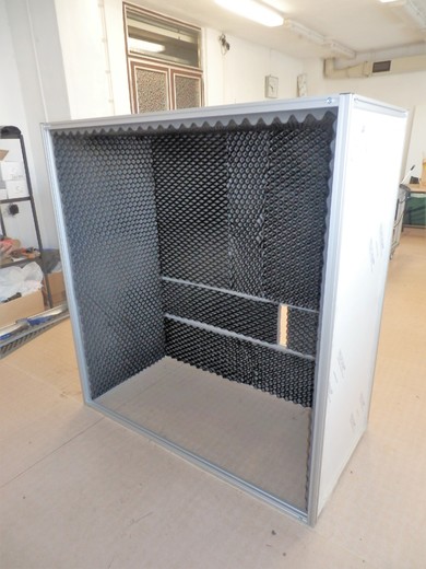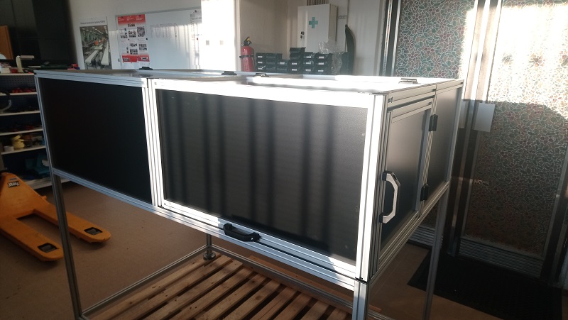 Zatemňovací rámKryt je sestaven z profilů vel. 30x30 a výplně jsou z navrženy z hliníkového černě lakovaného plechu. Rám je osazen čtyřmi dvířky. Dosedací plochy dvířek jsou opatřeby těsnící pryží. |