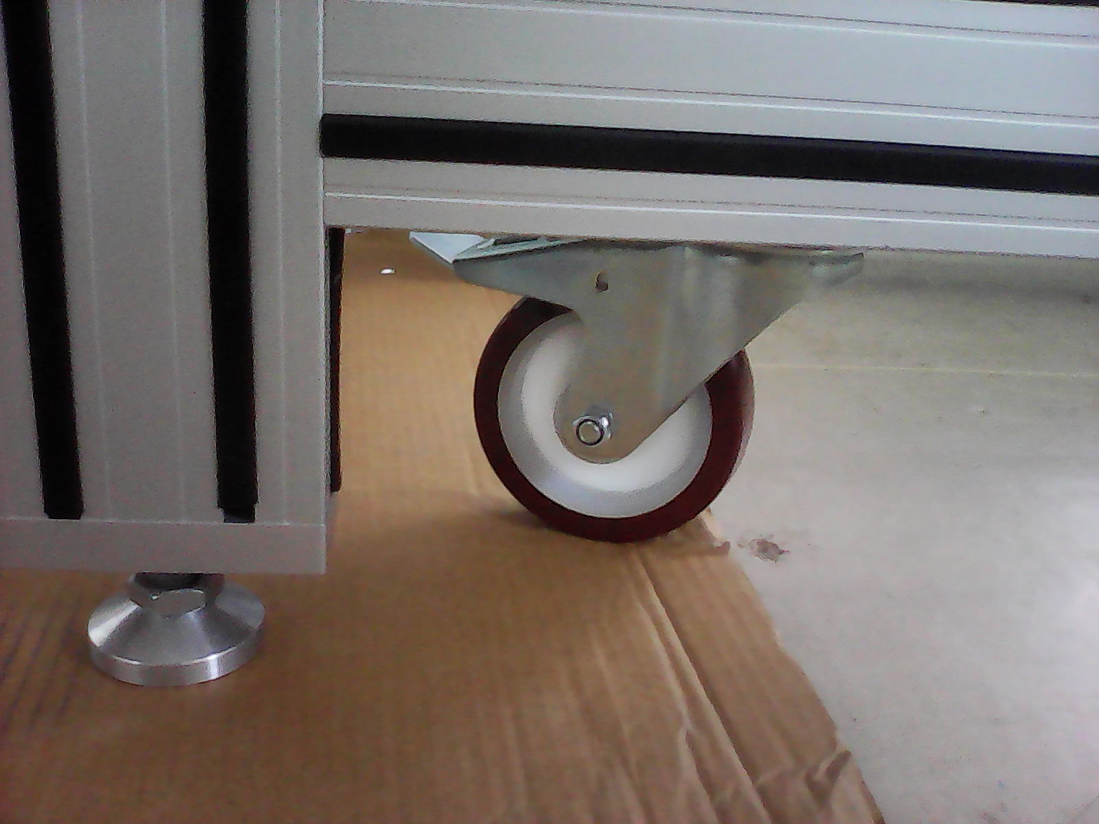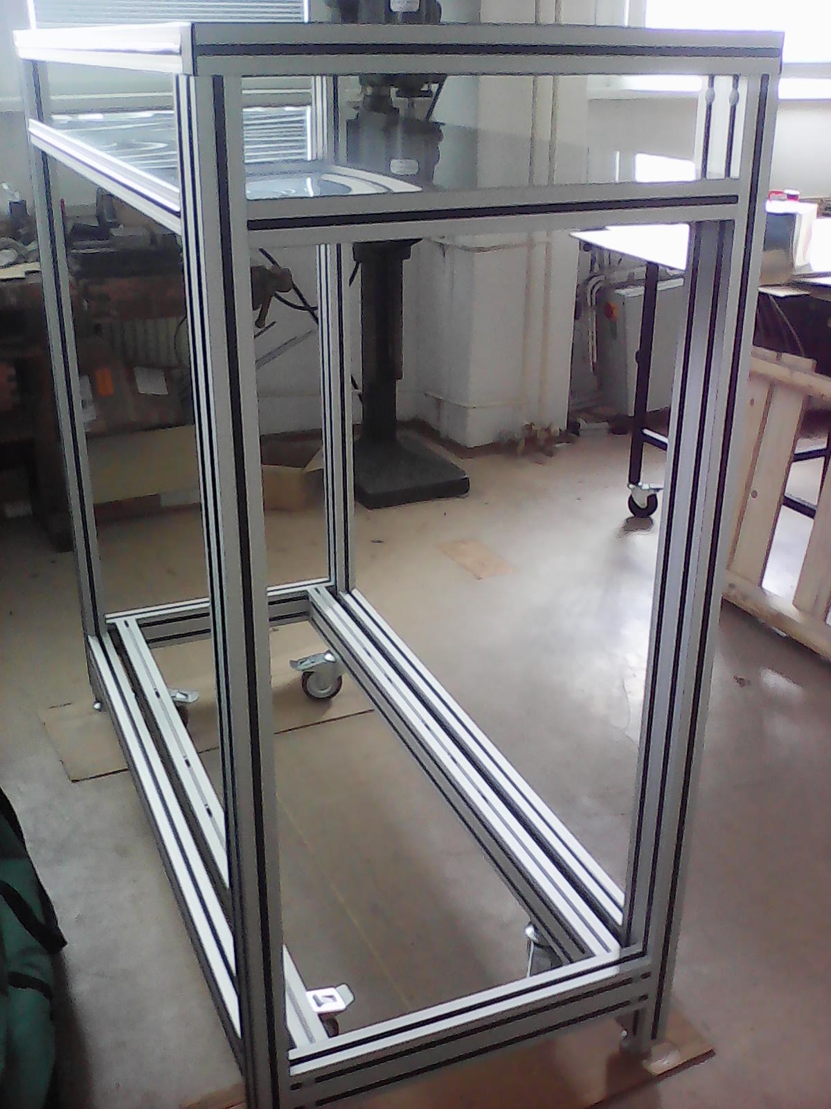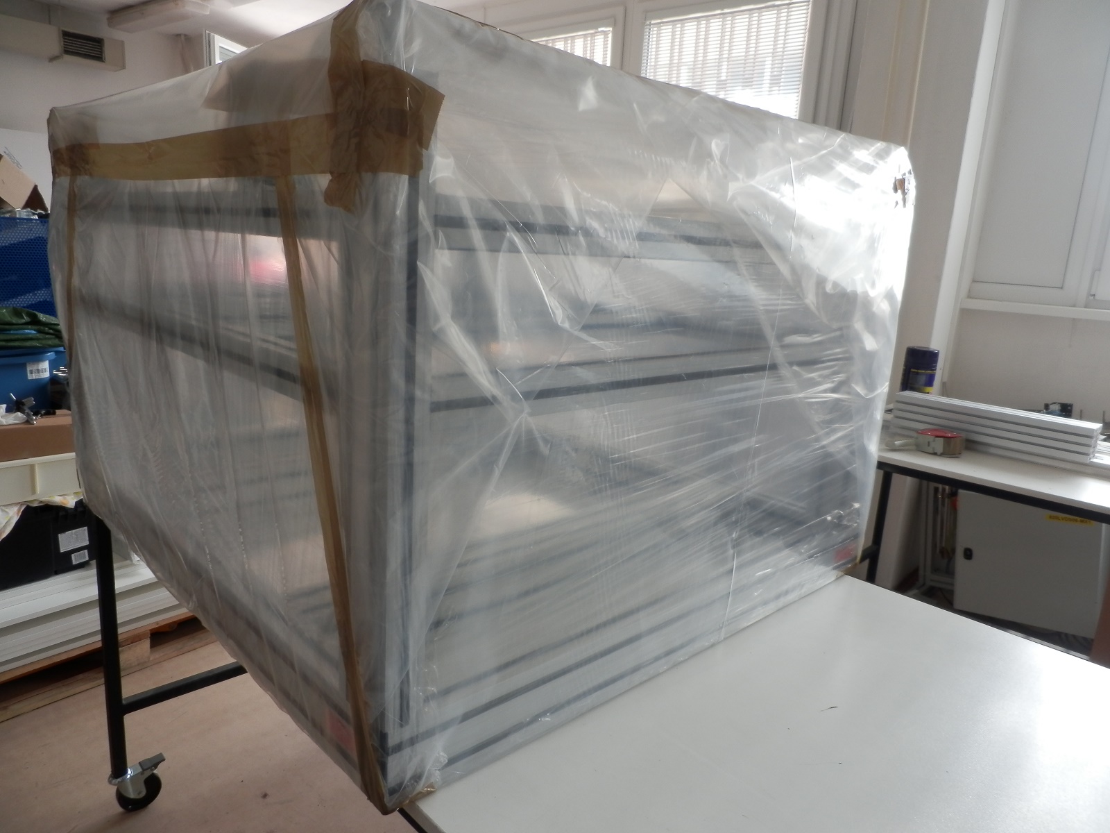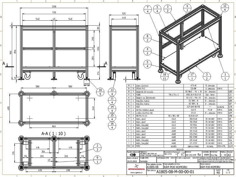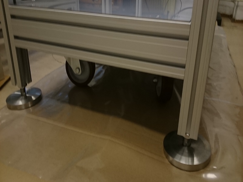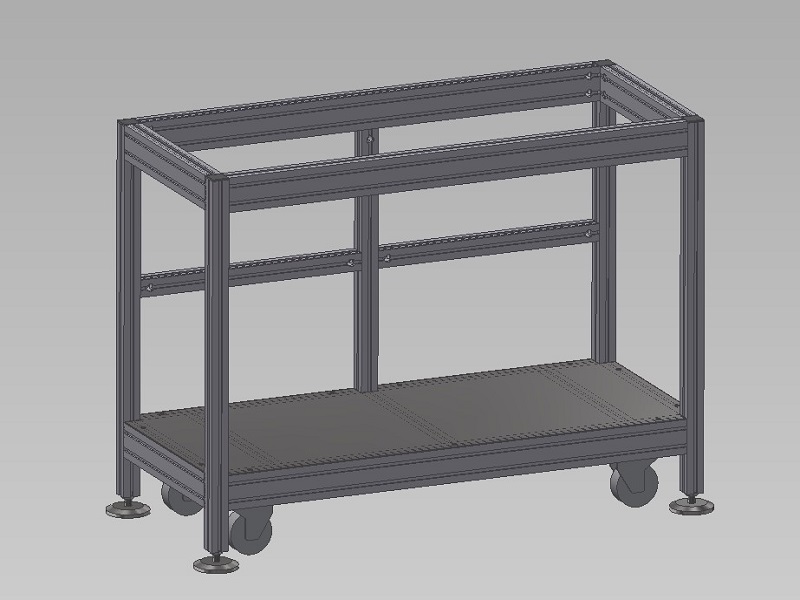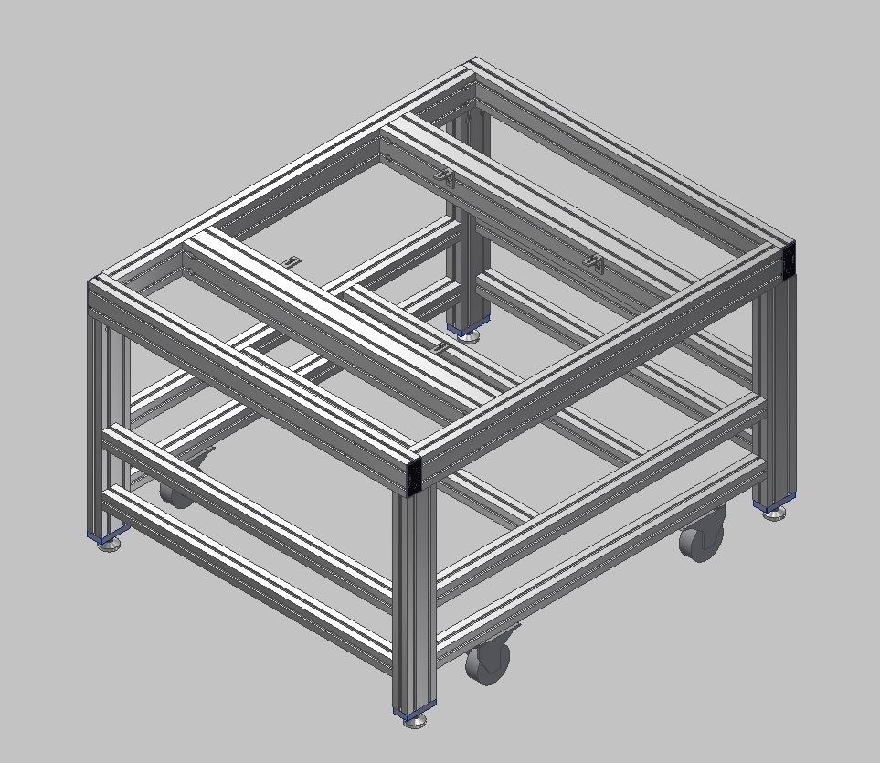 Rám vakuové komoryTento rám byl navržen pro instalaci a případný převoz vakuové komory v hygienicky čistých prostorech výzkumných laboratoří. Celková nosnost rámu je 200kg. Rám je navržen z hliníkových profilů 40x40mm a 40x80mm. Rám je osazen pojezdovými koly, které zajišťují snadný přesun. Pro stabilní ustavení na místě je vybaven stavitelnými nerezovými nohami 100/M16-VA/VA. |