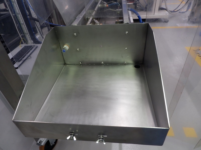 Odhlučnění ofuku extrudéruKryt je sestaven ze spodní nerezové jímky, z vnitřní ofukovací jednotky a z horní polykarbonátové části. Nerezová jímka slouží k odvodu chladící kapaliny a horní víko tlumí hluk vznikající od proudu vzduchu procházejícím ofukovací jednotkou. Celé zařízení je umístěno v prostorech sloužících pro výrobu zdravotní techniky. |