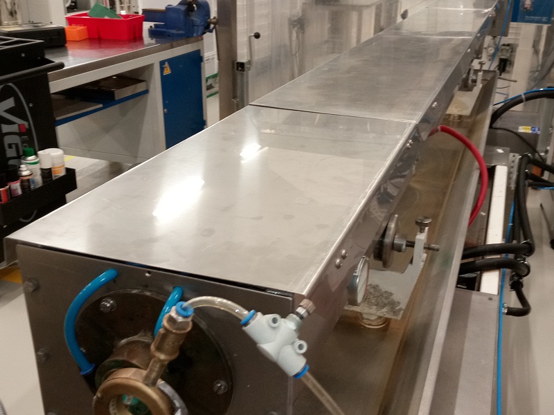 Zakrytování linkyZakrytování extruzních linek je vyrobeno z nerezových ocelových plechů. |