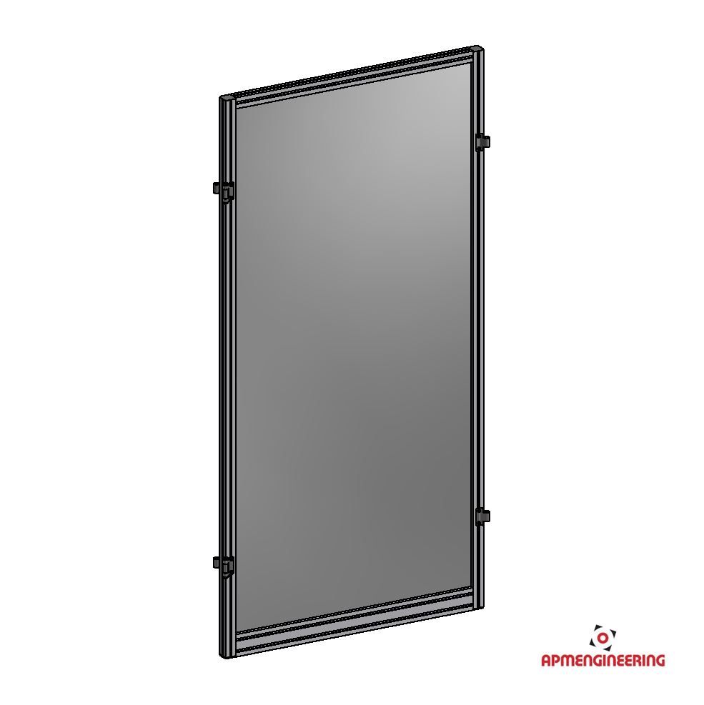 Výška rámu je 2000mm a šíře 1000mm. Toto provedení je nutné umístit mezi dva panely s koly, nebo nohami. Je možné ho použít i mezi dva panely s plastovou lištou, kdy bude po sestavení pod rámem mezera cca 4mm. Při použití tří, nebo čtyř stabilizačních příček může být použit i jako samostatně stojící (Viz. příklady sestavení). Výplň je ze sendvičové hliníkové desky tl. 3mm (Al/polyethylen/Al).