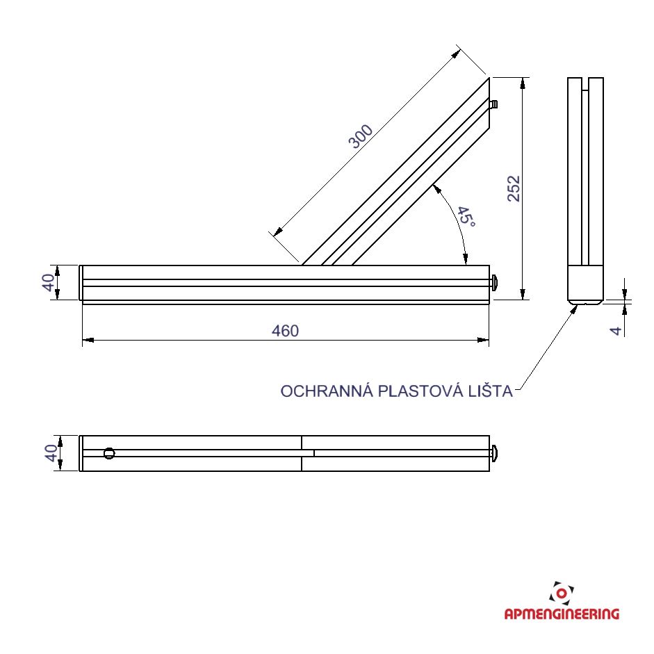 Tato stabilizační příčka délky 460mm je vyrobena z hliníkového eloxovaného profilu, je ze spodní strany chráněna plastovou lištou a slouží k zajištění stability kloubových stěn (Viz. příklady sestavení). Je určena pro stěny, které jsou také ze spodní strany rámu vybaveny plastovou lištou. Příčky jsou dodávány samostatně a je nutné je uchytit k rámu kloubové stěny.