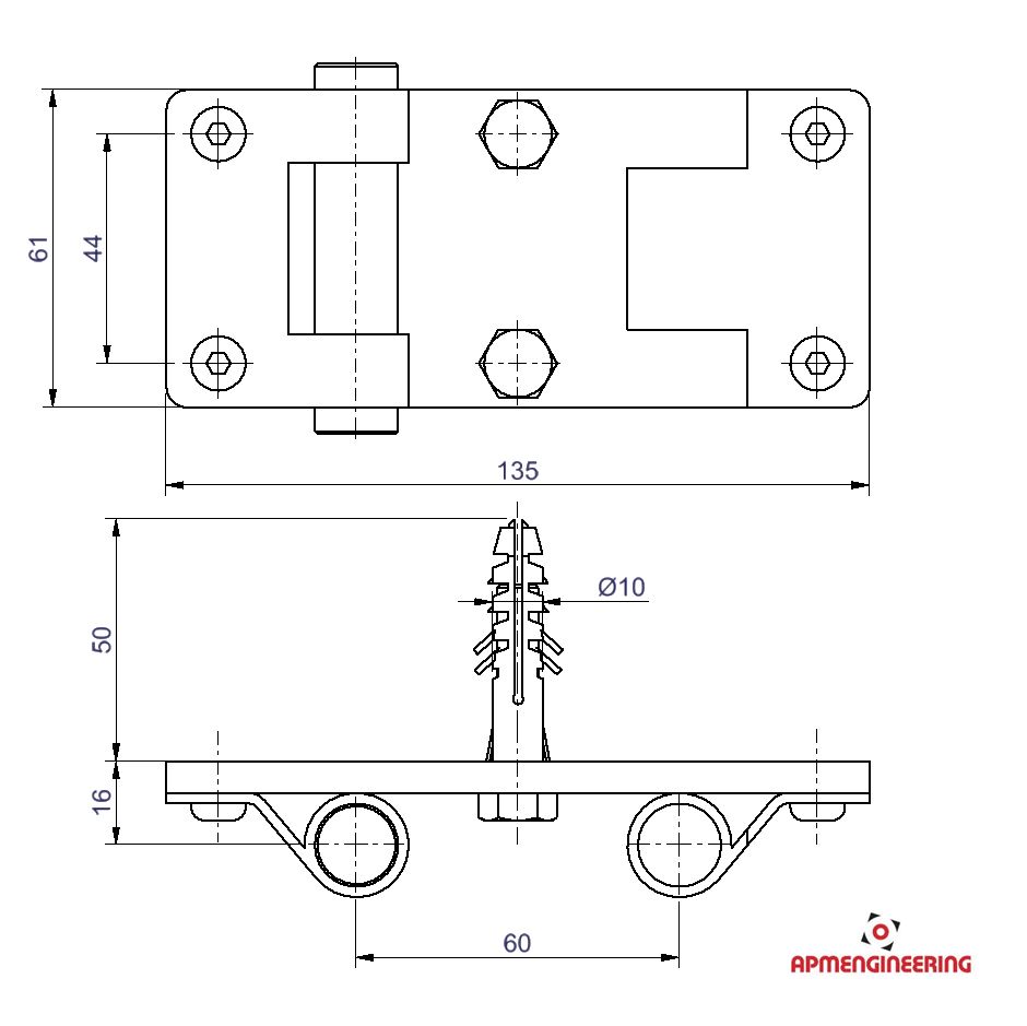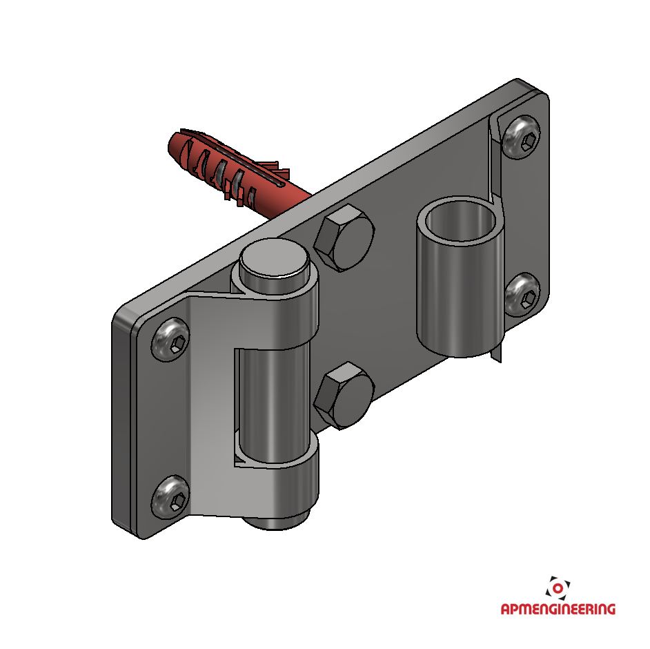 Kotevní deska slouží k uchycení stěny ke stěně budovy. Kotevní deska je osazeny dvěmi panty, které zajišťují spoj desky s rámem. Po rozpojení jedné, nebo druhé strany i natáčení v rozsahu +/-90°. Rozpojení i spojení pantu je jednoduché, rychlé a lze ho provádět bez použití nářadí (Viz. příklady sestavení). Součástí dodávky jsou i dva vruty s hmoždinkami.