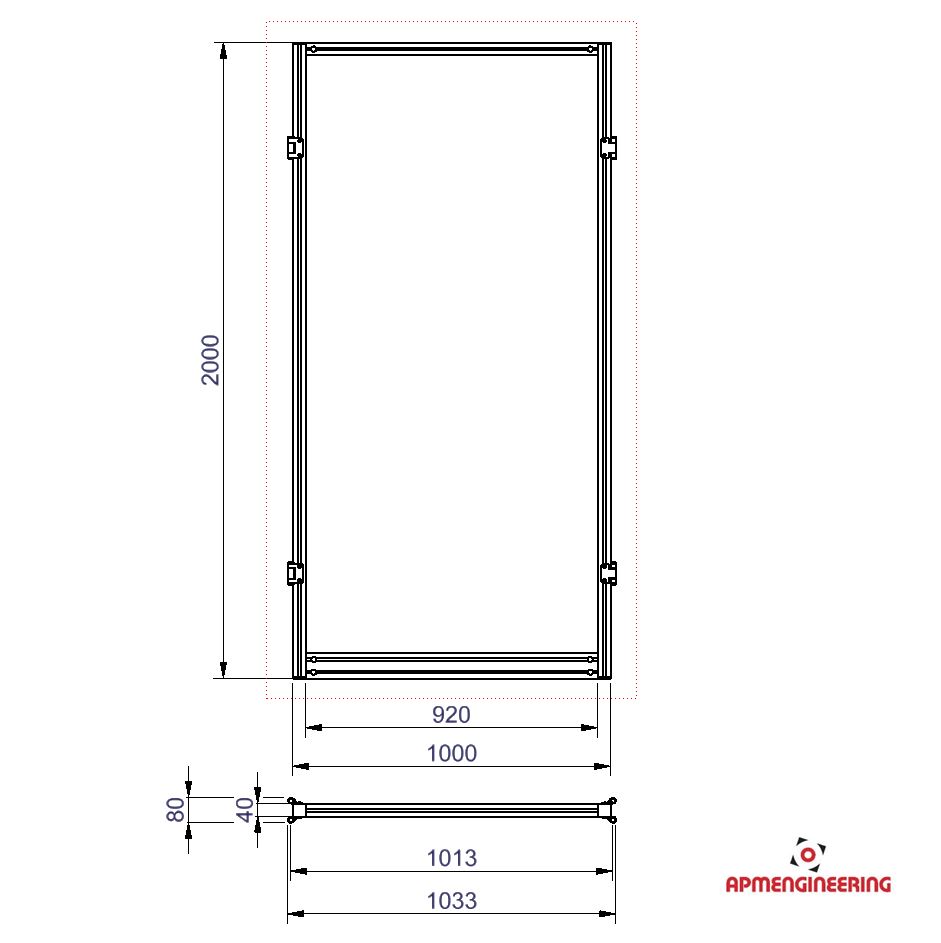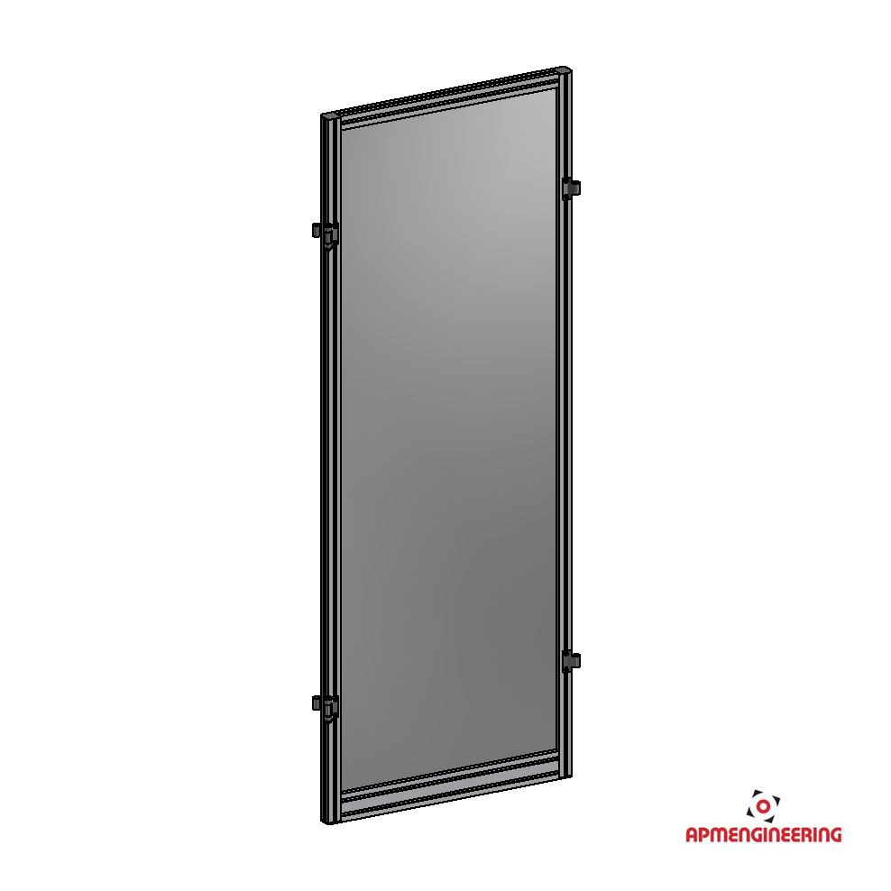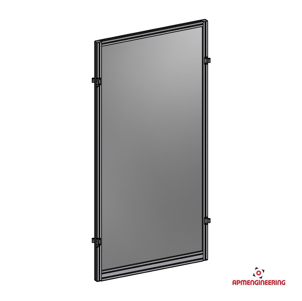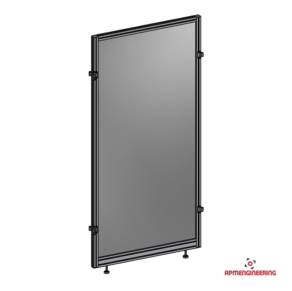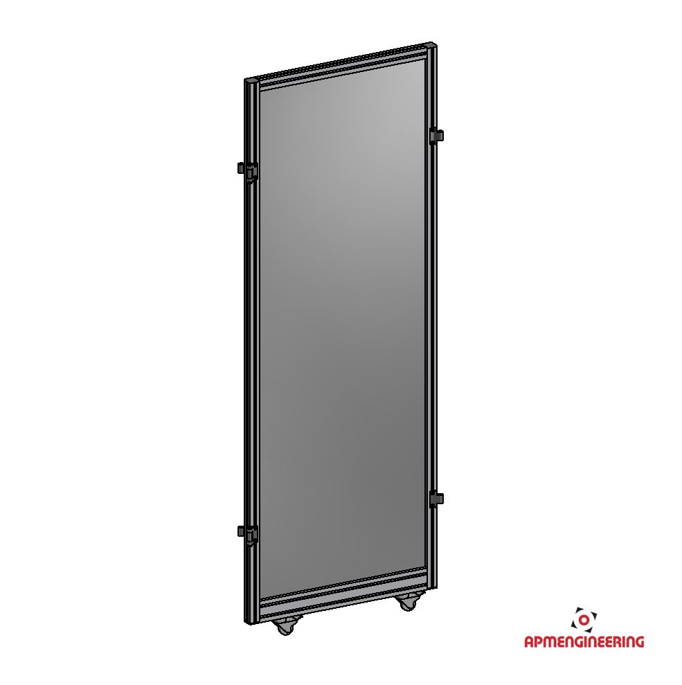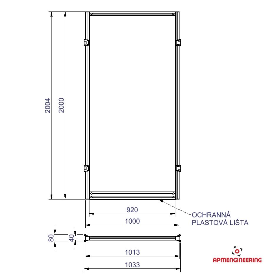 Výška rámu je 2000mm a šíře 1000mm. Toto provedení je nutné umístit mezi dva panely s koly, nebo nohami. Je možné ho použít i mezi dva panely s plastovou lištou, kdy bude po sestavení pod rámem mezera cca 4mm. Při použití tří, nebo čtyř stabilizačních příček může být použit i jako samostatně stojící (Viz. příklady sestavení). Výplň je ze sendvičové hliníkové desky tl. 3mm (Al/polyethylen/Al).