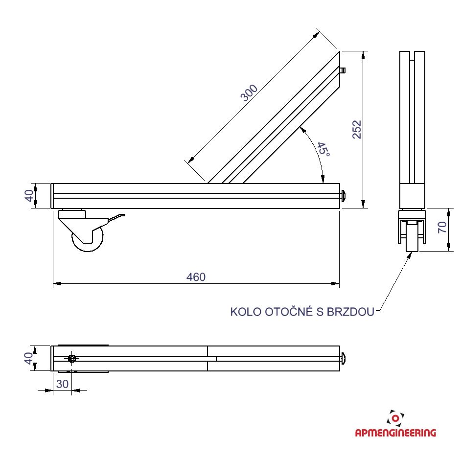 Tato stabilizační příčka délky 460mm je vyrobena z hliníkového eloxovaného profilu, je osazena pojezdovým kolem a slouží k zajištění stability kloubových stěn (Viz. příklady sestavení). Je určena pro stěny, které jsou také vybaveny pojezdovými koly. Příčky jsou dodávány samostatně a je nutné je uchytit k rámu kloubové stěny.