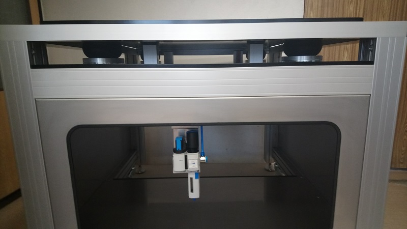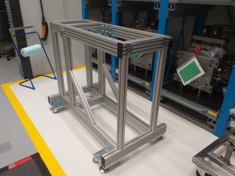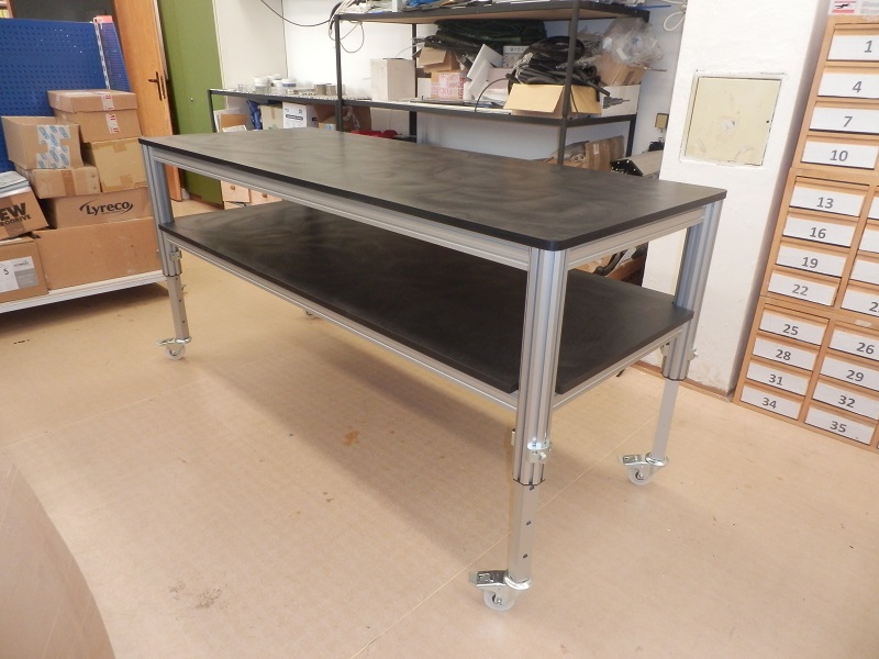 Stůl pod tiskárnuTento stůl je navržen pro instalaci průmyslové tiskárny. Vzmledem k hmotnosti tiskárny a požadavkům na tuhost celého stolu byly použity profil 100x50 a 50x50mm. |