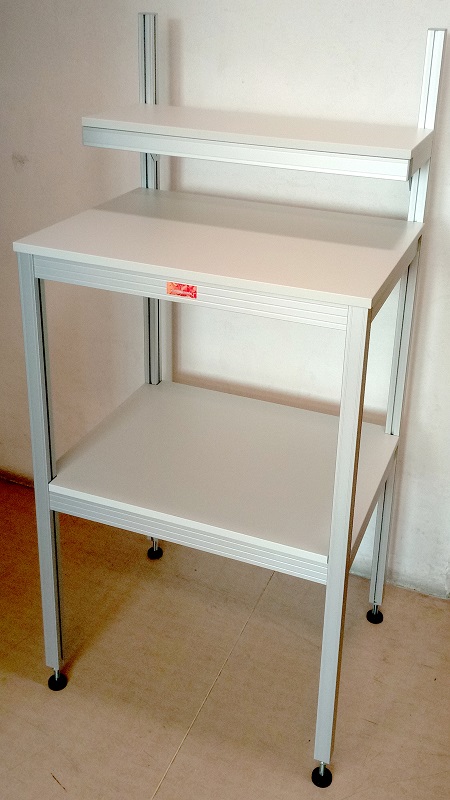 Stůl pro monitory IIRám těchto stolů je navržen z profilů 40x40mm. Pracovní plocha je ve výšce cca 1000mm a je vyrobena z LTD desky. Nad pracovní deskou je instalována police pro umístění standardních monitorů. |