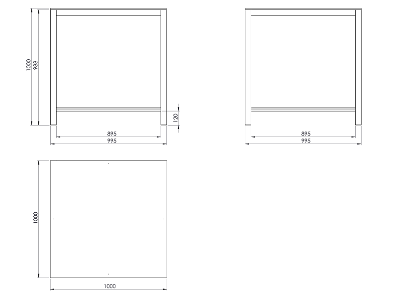 Pracovní stůl o rozměrech desky 1000x1000 mm. Výška stolu je 1000 mm, laminovaná dřevotřísková deska.