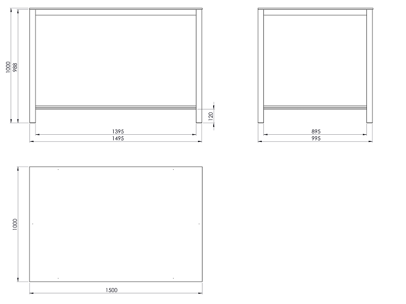 Pracovní stůl o rozměrech desky 1000x1500 mm. Výška stolu je 800 mm, deska spárovka.