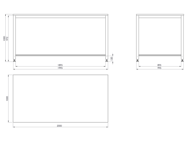 Pracovní stůl o rozměrech desky 1000x2000 mm. Výška stolu je 800 mm, laminovaná dřevotřísková deska.