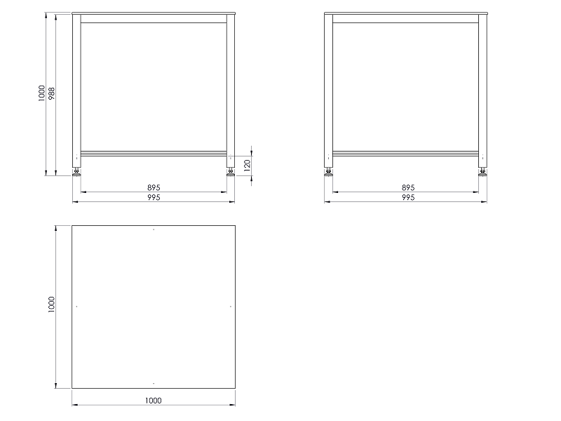 Pracovní stůl o rozměrech desky 1000x1000 mm. Výška stolu je 1000 mm, deska spárovka.