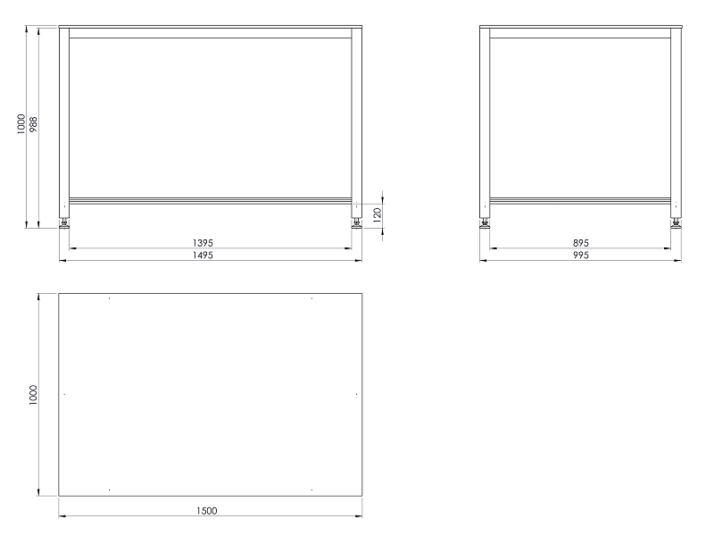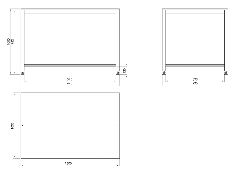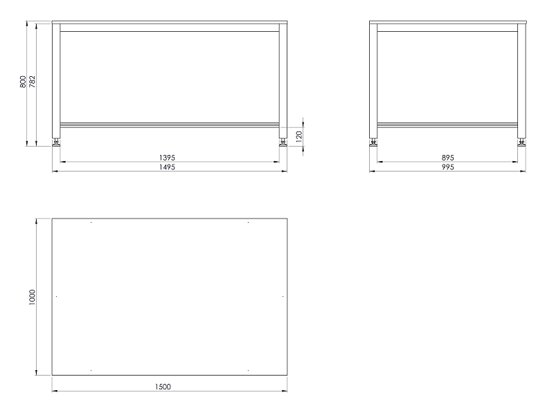 Pracovní stůl o rozměrech desky 1000x1500 mm. Výška stolu je 800 mm, deska spárovka.
