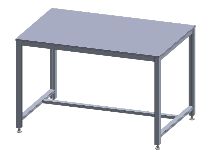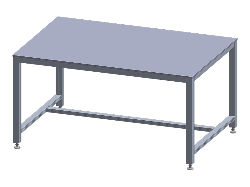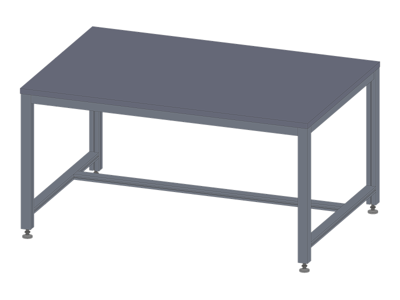 Rámy stolů jsou vyráběny z hliníkových profilů 30x60mm a nohy z profilů o rozměru 40x40mm. Spoje mezi jednotlivými profily jsou provedeny pomocí ocelových zinkovaných PVS spojek. K rámu stolů jsou pomocí štoubů uchyceny desky stolů. Tyto desky jsou vyrobeny z laminovaných dřevotřískových desek (LTD) tloušťky 18mm a jejich boky jsou chráněny plastovými ABS lištami.