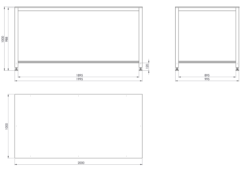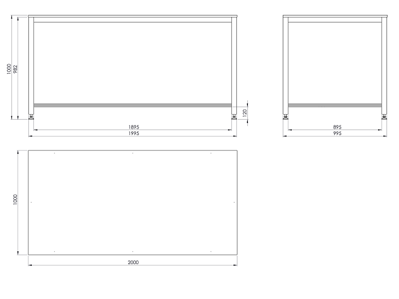 Pracovní stůl o rozměrech desky 1000x2000 mm. Výška stolu je 1000 mm, laminovaná dřevotřísková deska.