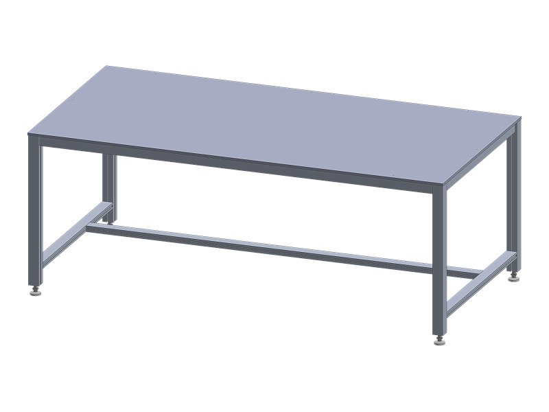 Pracovní stůl o rozměrech desky 1000x2000 mm. Výška stolu je 1000 mm, deska z kompozitního laminátu.