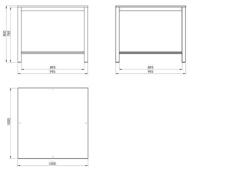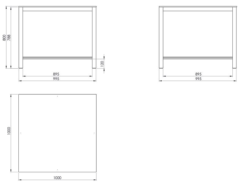Pracovní stůl o rozměrech desky 1000x1000 mm. Výška stolu je 1000 mm, laminovaná dřevotřísková deska.