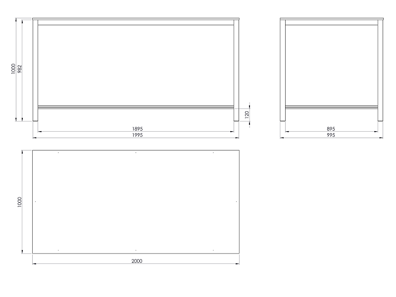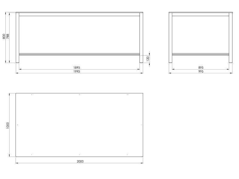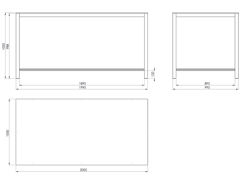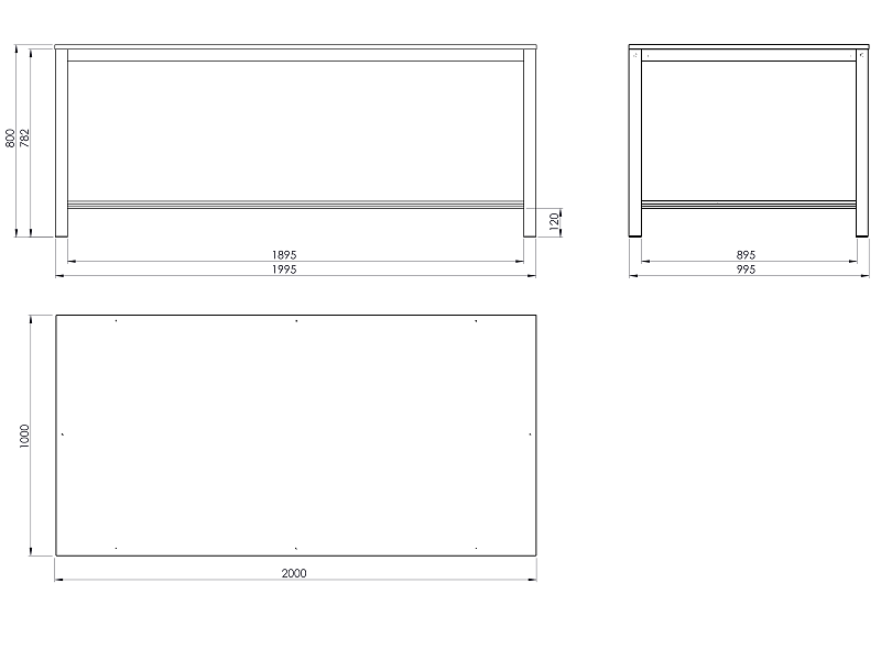 Pracovní stůl o rozměrech desky 1000x2000 mm. Výška stolu je 800 mm, deska spárovka.