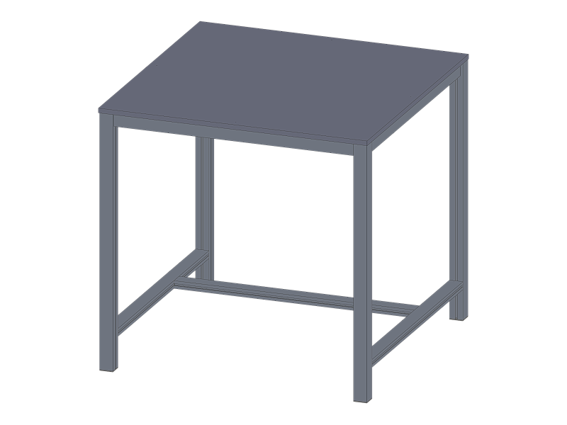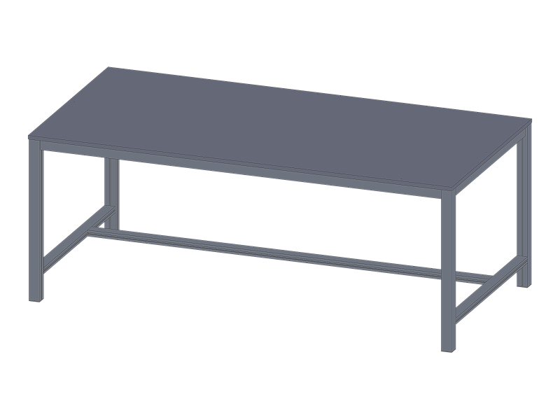 Rámy stolů jsou vyráběny z hliníkových profilů 30x60mm a nohy z profilů o rozměru 40x40mm. Spoje mezi jednotlivými profily jsou provedeny pomocí ocelových zinkovaných PVS spojek. K rámu stolů jsou pomocí štoubů uchyceny desky stolů. Tyto desky jsou vyrobeny z laminovaných dřevotřískových desek (LTD) tloušťky 18mm a jejich boky jsou chráněny plastovými ABS lištami.