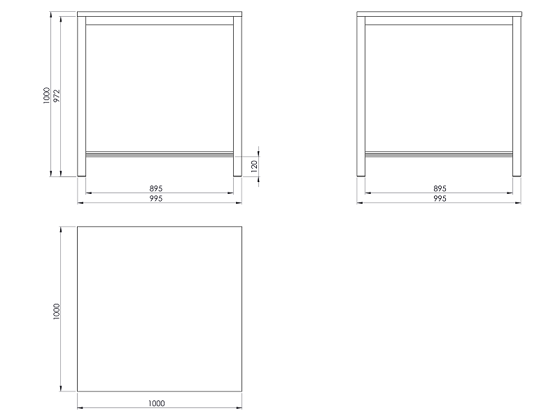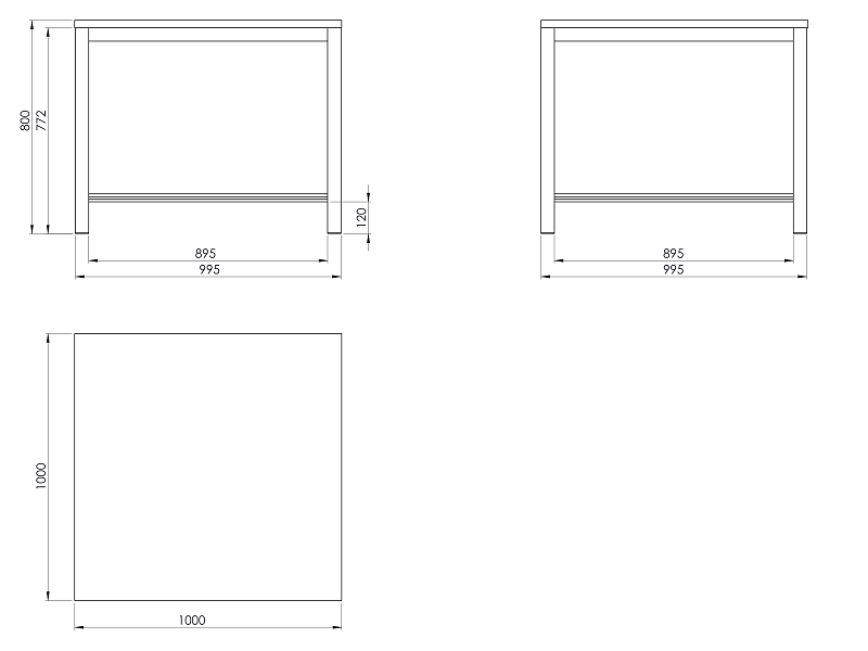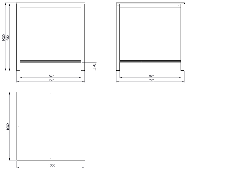 Pracovní stůl o rozměrech desky 1000x1000 mm. Výška stolu je 1000 mm, deska spárovka.