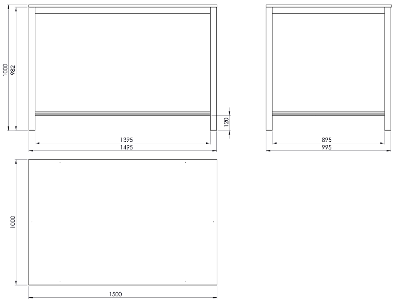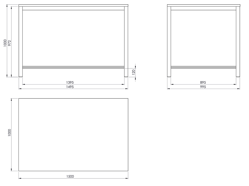 Pracovní stůl o rozměrech desky 1000x1500 mm. Výška stolu je 1000 mm, deska spárovka.
