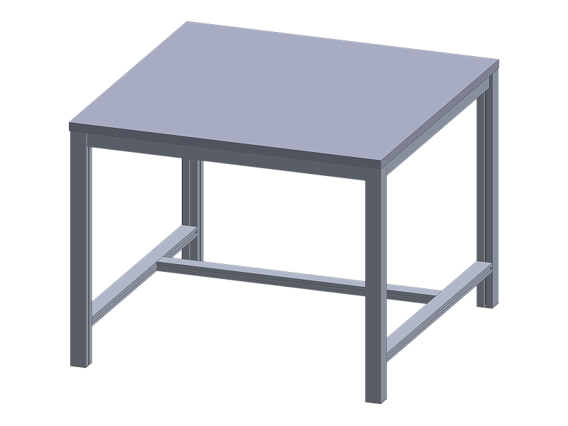 Pracovní stůl o rozměrech desky 1000x1000 mm. Výška stolu je 800 mm, laminovaná dřevotřísková deska.