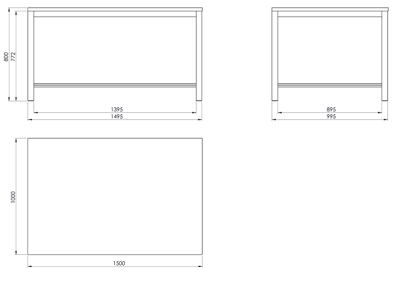 Pracovní stůl o rozměrech desky 1000x1500 mm. Výška stolu je 800 mm, deska spárovka.