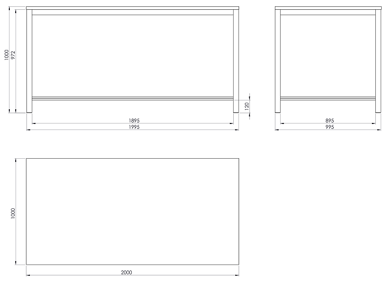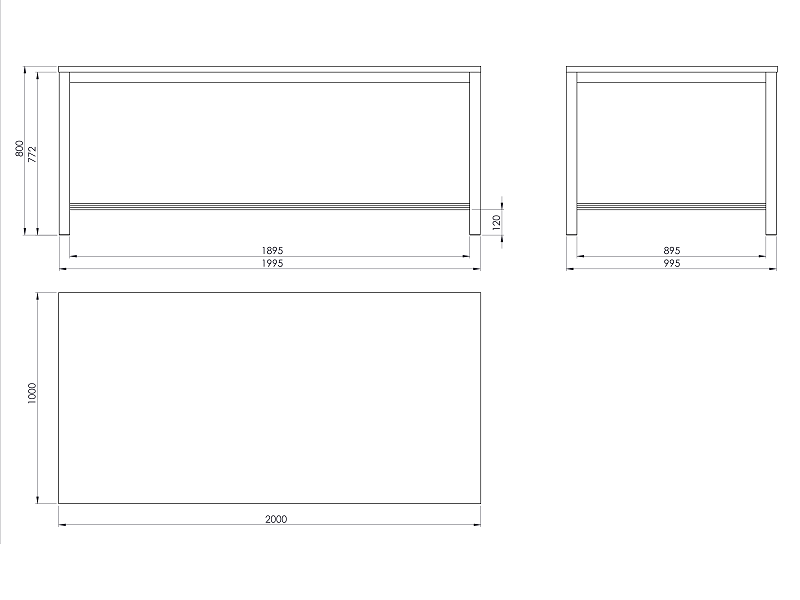 Pracovní stůl o rozměrech desky 1000x2000 mm. Výška stolu je 800 mm, laminovaná dřevotřísková deska.