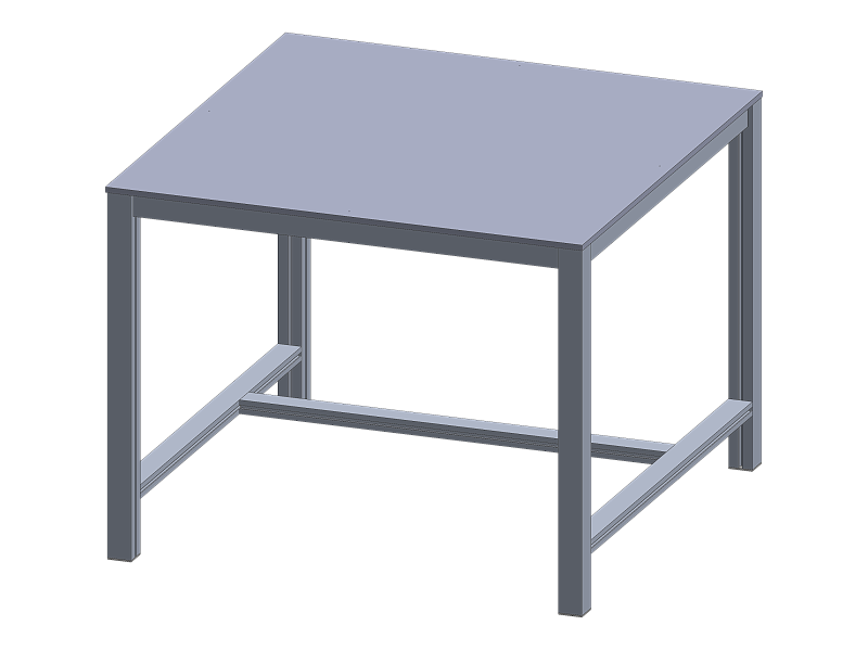 Pracovní stůl o rozměrech desky 1000x1000 mm. Výška stolu je 800 mm, deska z kompozitního laminátu.