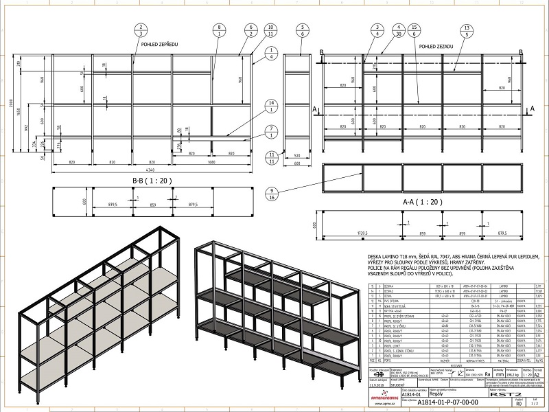 Regály, policeNavrhneme a vyrobíme zařízení pro skladování nebo odkládání v provedení podle Vašich požadavků. Konstrukce bude provedena z hliníkových profilů. Další materiály budou použity podle Vašich požadavků. |