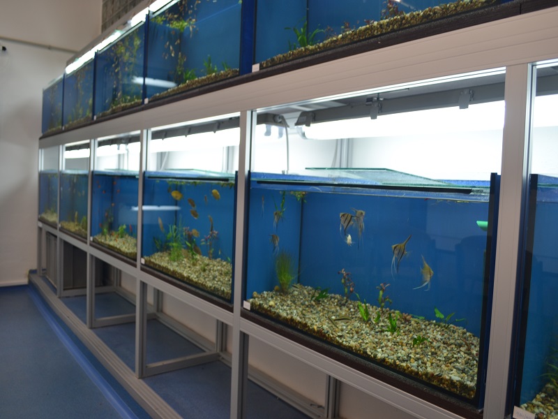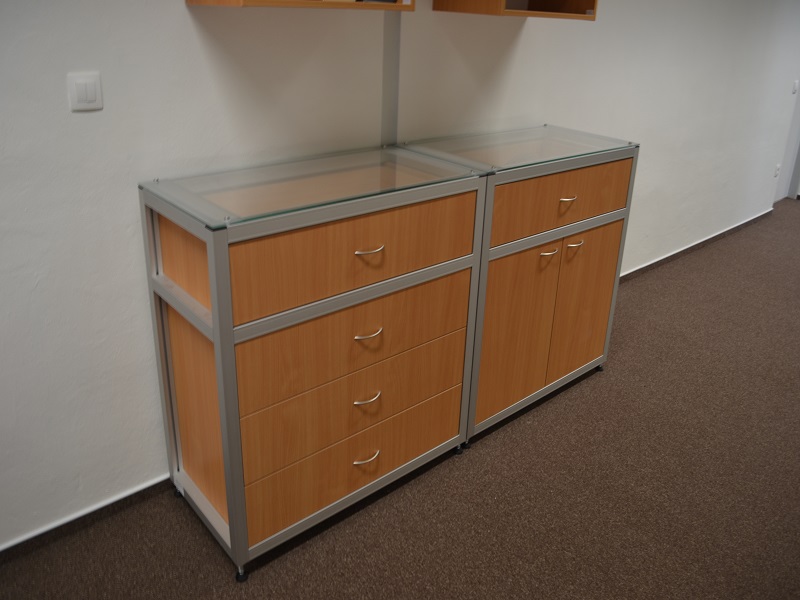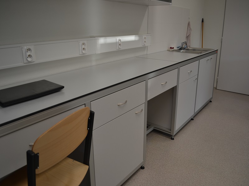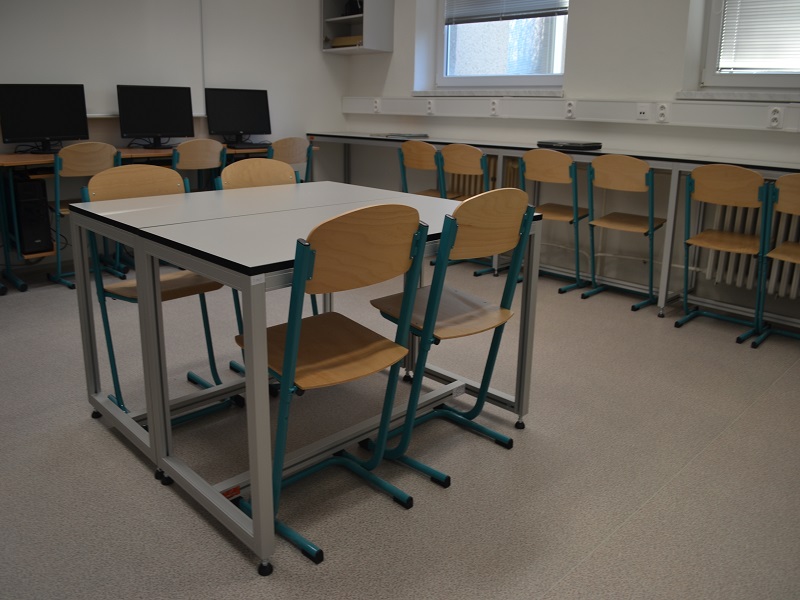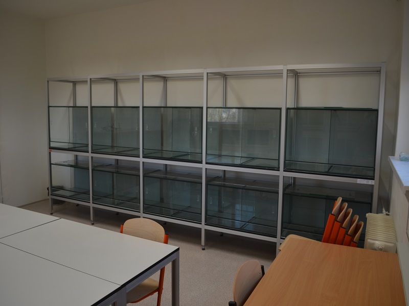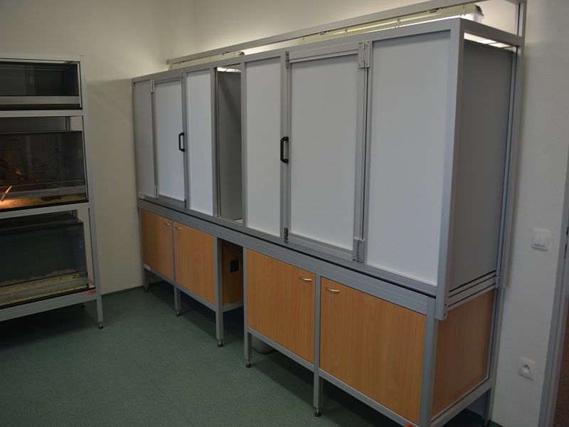 Vitríny, akvária, terária, stolyKonstrukční řešení, výroba a montáž vybavení školského zařízení v rámci kompletní rekonstrukce. Dodány byly rámy pro instalaci akvárií a terárií, vitríny, stoly základní, stoly pro PC, stoly pro mikroskopy i stoly laboratorní. Závěsné lišty pro obrazy, pomůcky a věšáky na oblečení. Podle vlivu vlhkosti jsou desky na police nebo desky stolů provedeny z laminované dřevotřísky, vodovzdorné překližky nebo z kompaktního laminátu. |