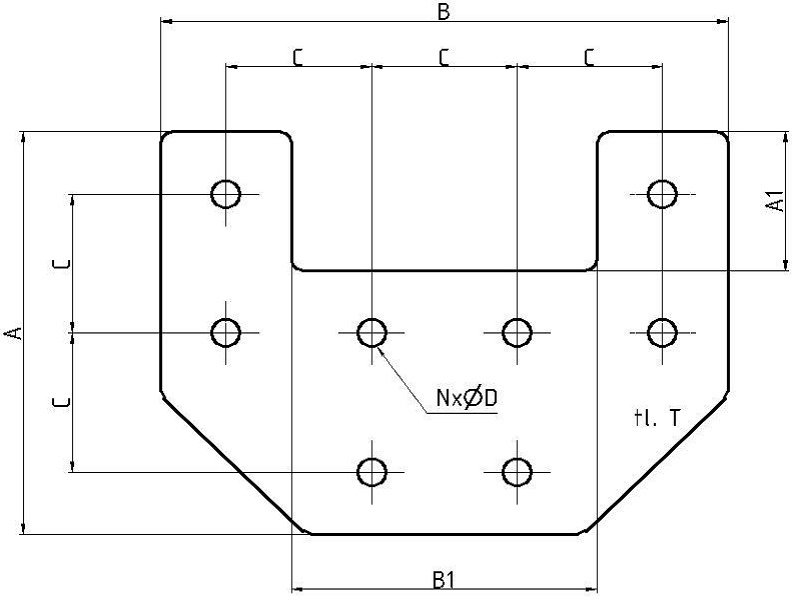 výztuha s výřezem slouží ke spojení dvou profilů s jednou drážkou (zesílené provedení), výřez umožňuje napojení dalšího profilu